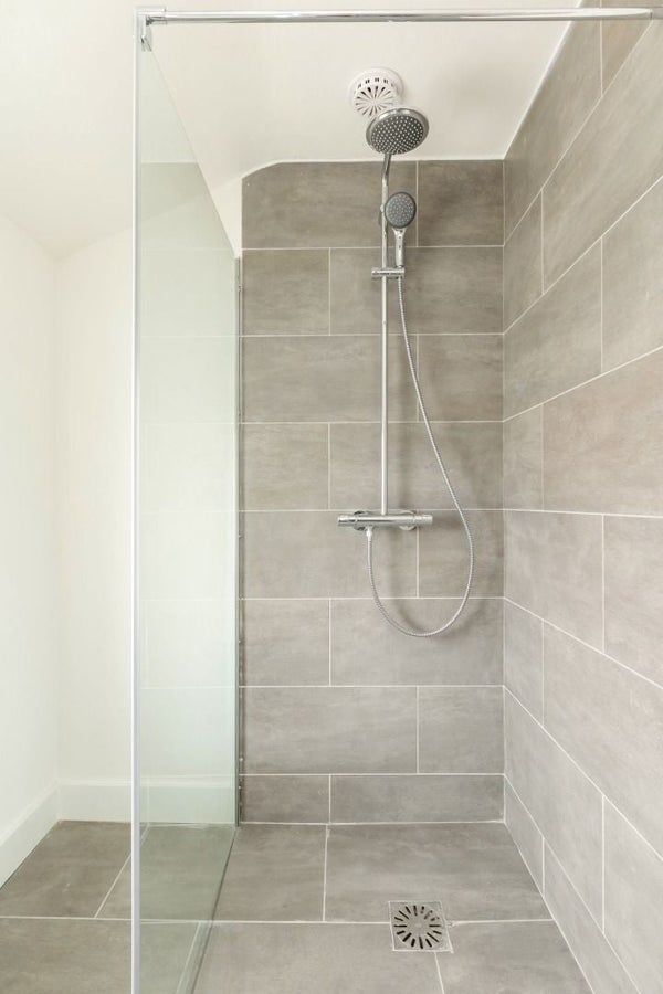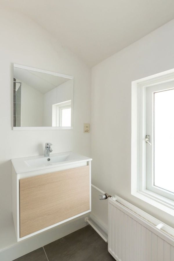 Badkamer : voorzien van douche en wasbak aparte toilet.