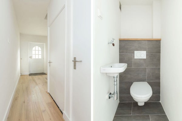 Entree: geeft toegang tot de hal, toilet, bergkast onder de trap, trapopgang en de woonkamer.