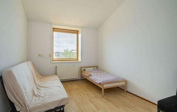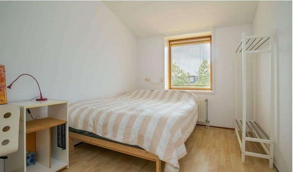 Op de tweede verdieping bevinden zich nog twee slaapkamers (beide circa 9,3 m²), evenals een wasruimte met aansluitingen voor wasmachine en droger, plus de opstelling van de cv-ketel. Ook deze verdieping is voorzien van een nette laminaatvloer.