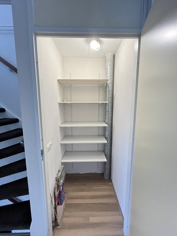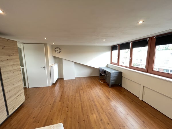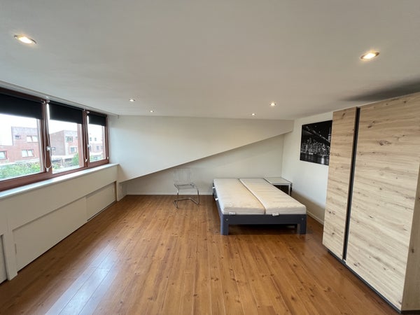 Op de tweede verdieping bevindt zich een overloop en een grote slaapkamer (21m2) met tweepersoonsbed en ingerichte kantoorwerkplek.