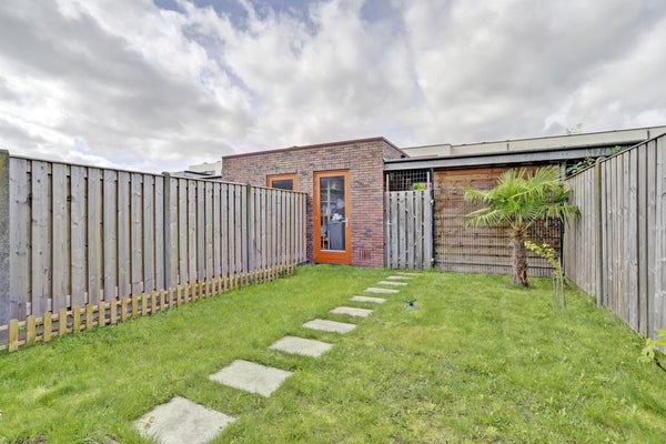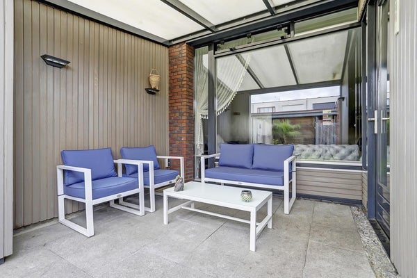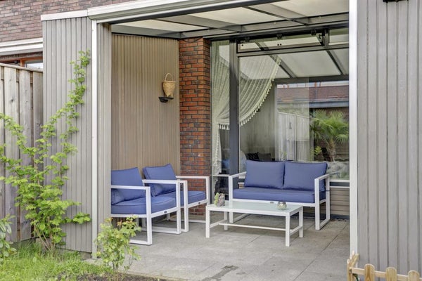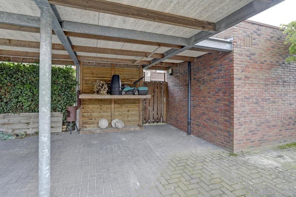 De achtertuin is een oase van rust, met een veranda tussen de serre en de tuinafscheiding. Daarnaast beschikt de woning over een ruime tuin, een schuur en een carport. De veranda kan worden afgesloten met een elektrisch rolluik.