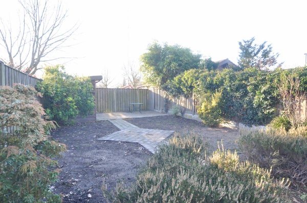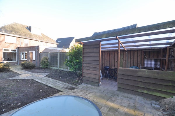 De tuin is volledig omheind, onderhoudsvriendelijk en v.v. een dubbele poort voor de auto en tuinhuis. Daarnaast bestaat er de mogelijkheid tot overleg voor de tuin (bijvoorbeeld aanleg gras).