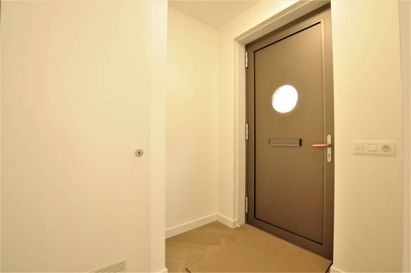 Entree middels de voordeur naar de hal, welke toegang verschaft tot het toilet en de woonkamer.