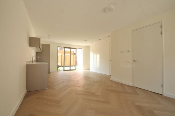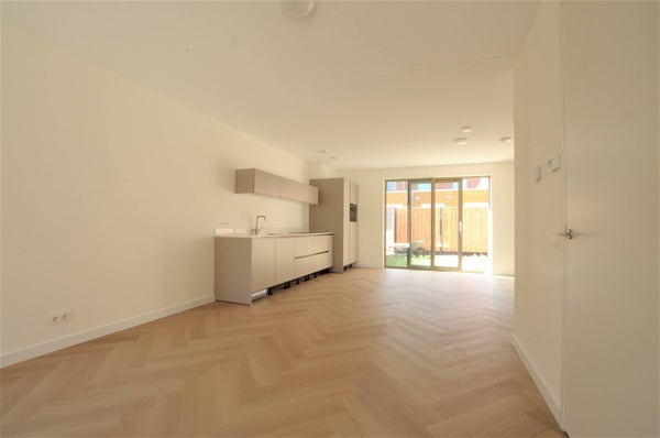 Middels een ruime schuifdeur hebt u de mogelijkheid de tuin te betreden welke is gericht naar het zuiden.