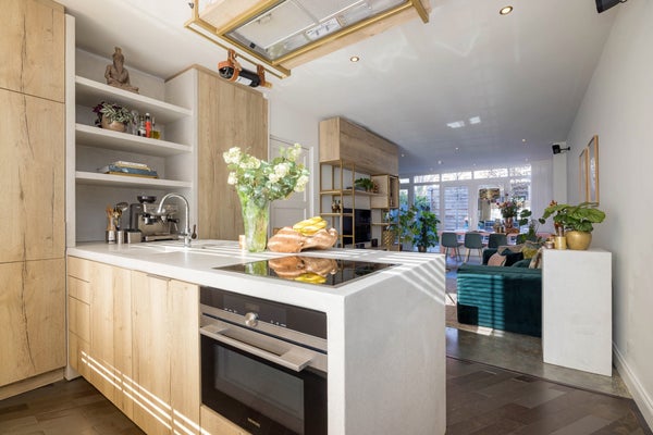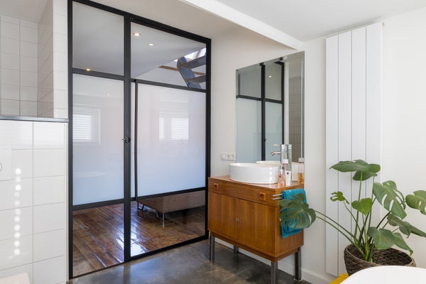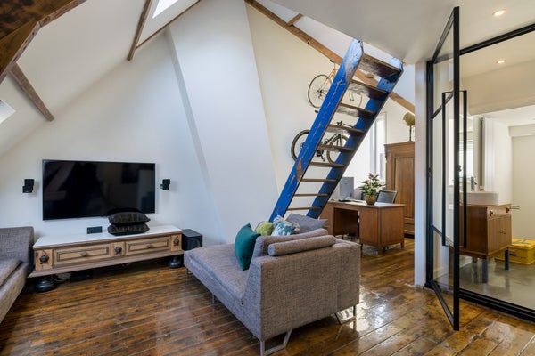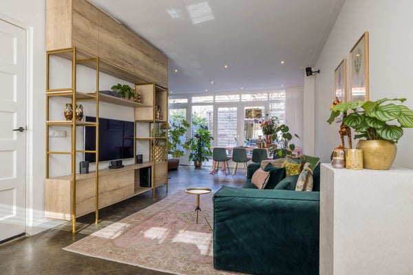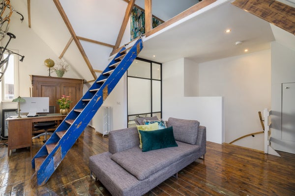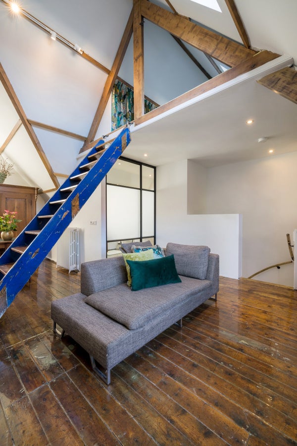 Op de tweede verdieping is een extra laag gerealiseerd met een woonruimte, badkamer en slaapzolder.