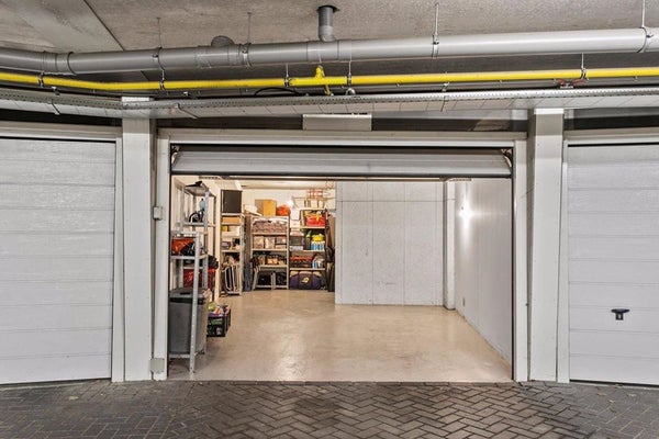 Spacious garage with enough space for parking a car. Next to that extra space for storage.