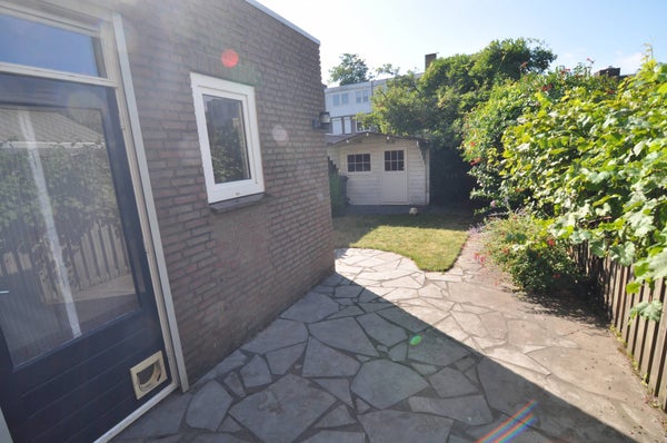 Achtertuin: Op het zonnige zuiden gelegen achtertuin met terras, schutting aan beide zijden, beplanting, houten tuinhuis en achterom via houten poort.