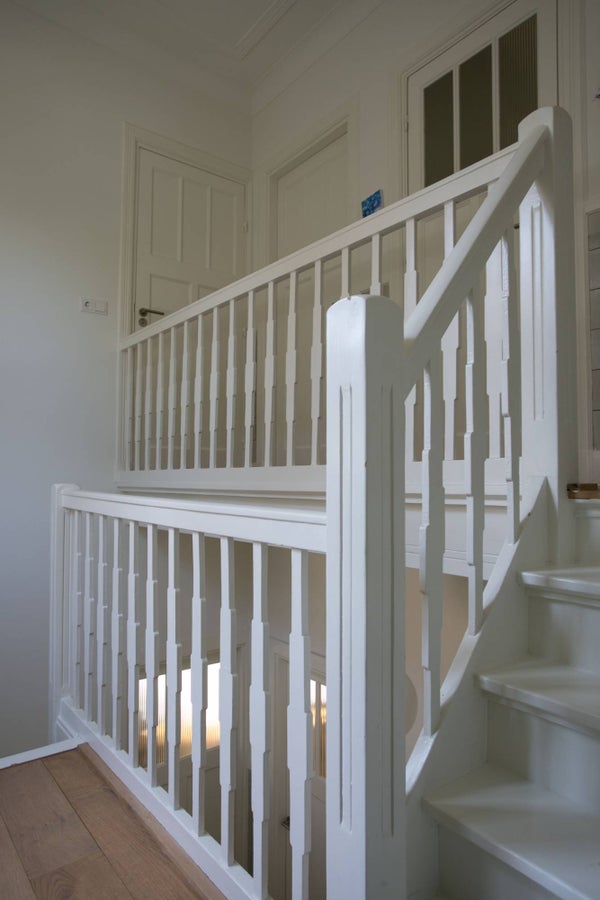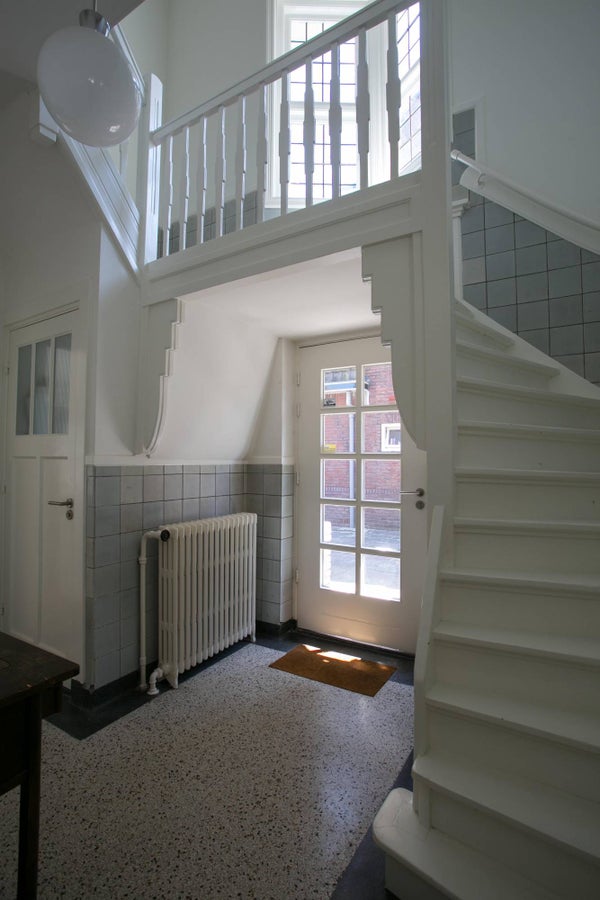 Geweldige entree met een in het oog springend trappenhuis. In combinatie met de lichte afwerking en de houten elementen voelt u direct de warme sfeer in de woning. Ook hebt u toegang tot het toilet vanuit de hal.