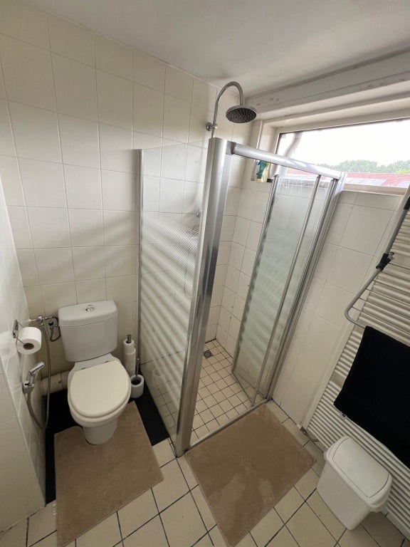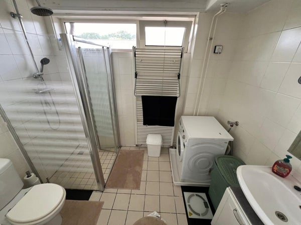 Badkamer: Geheel betegelde badkamer aan de voorzijde gelegen en voorzien van een douche-cabine, 2e toilet, wastafelmeubel en mechanische ventilatie-unit.
