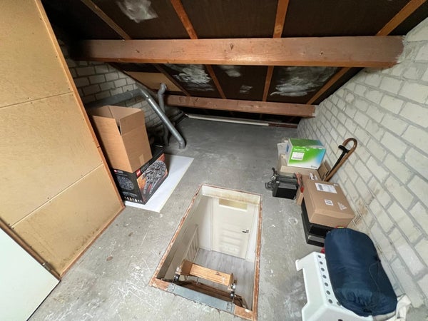 Tweede Verdieping (Zolder): Via een vlizotrap toegang tot de open zolder met dakraam, veel opbergruimte en opstelling van de cv ketel.