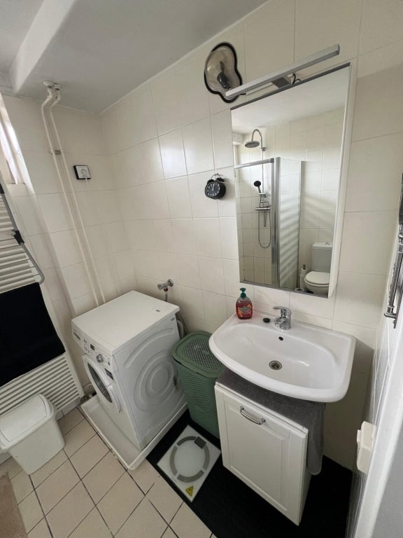 Overloop 1e verdieping: Aansluiting wasmachine en ingebouwde opslagkast