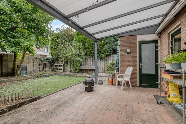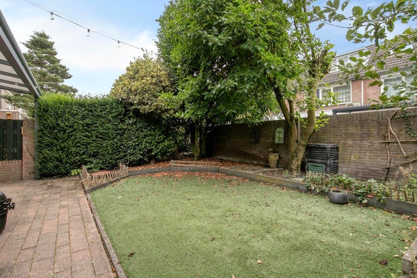 De tuin is een ware oase van rust en heeft een prachtige brede terrasoverkapping. Het is omgeven door vegetatie, wat privacy en schaduw biedt. Er is een kwalitatief kunstgras aangelegd waardoor het een zeer onderhoudsvriendelijke tuin is geworden.