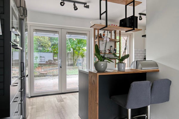Vanuit de keuken heeft u toegang tot de ruime tuin aan de achterzijde (op het zuidwesten) en de op afstand bedienbare garage.