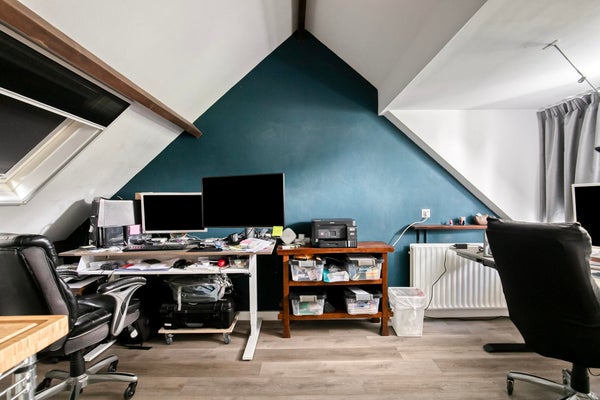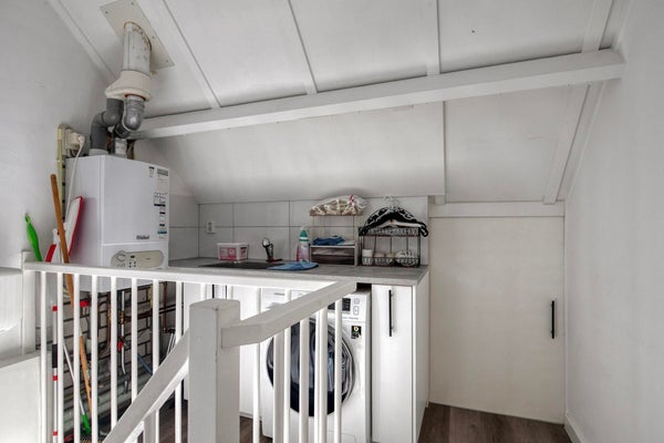 Ruime zolderverdieping, voorzien van een slaapkamer met dakkapel en een aparte wasruimte.