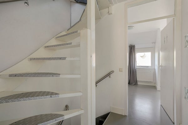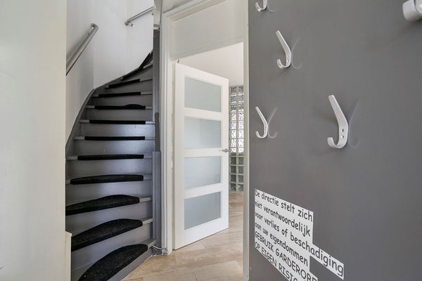 Middels de erker aan de voorkant van de woning kom je in de hal. In de hal bevindt zich de geheel betegelde toiletruimte met hangend closet, meterkast en trapopgang naar de 1e verdieping.