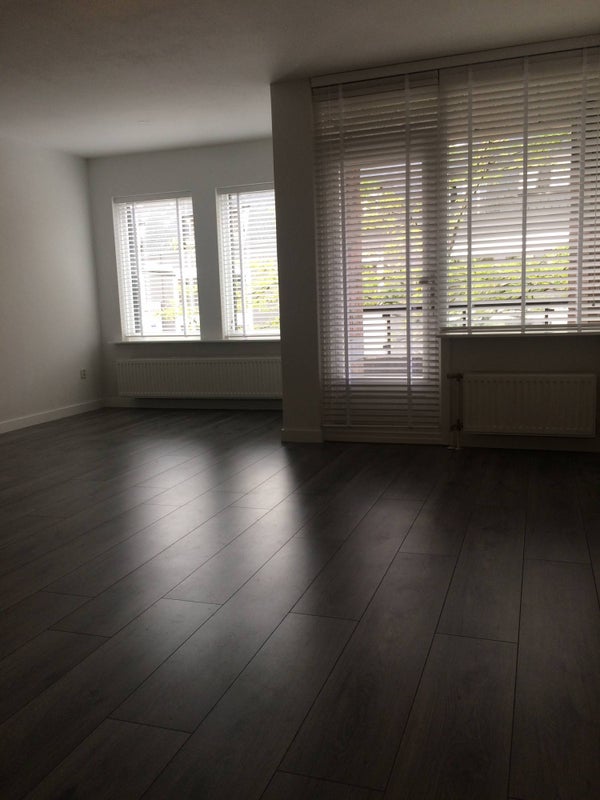 Royale living, voorzien van laminaat vloer, stucwerk wanden, spuitwerk plafond, de raampartij aan de voorzijde en grote schuifpui (volledig nieuwe aluminium kozijnen) aan de achterzijde zorgen voor een prettige lichtinval.