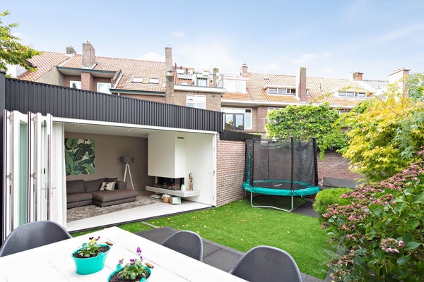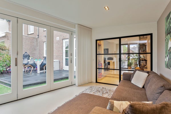 Gezien de aanbouw is er erg veel ruimte gecreëerd aansluitend op de keuken, naar de achterzijde van de woning. Hier vindt u een heerlijke lounge ruimte met brede schuifdeuren tot de tuin. Deze ruimte is ideaal te gebruiken als kantoor, speelkamer of zoals zichtbaar op de foto's als lounge kamer waar u heerlijk kunt genieten bij de gashaard wanneer het buiten afkoelt.