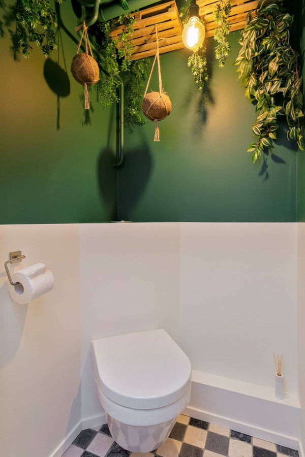 Entree met trapopgang naar de 1e verdieping, toilet en toegang tot de woonkamer. De hal is volledig gemoderniseerd maar beschikt wel over de karakteristieke originele tegelvloer. Toilet beschikt over een hangend toilet met fonteintje.