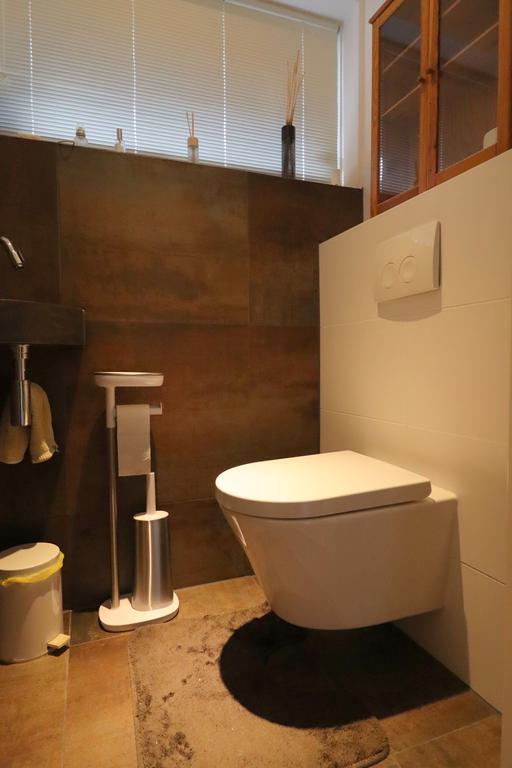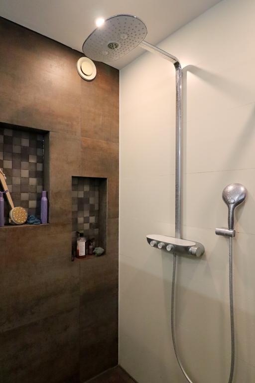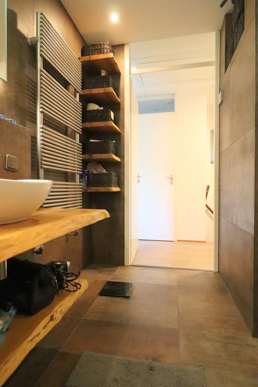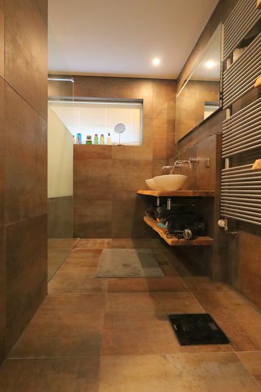 Overloop met toegang tot twee slaapkamers, badkamer en aparte toiletruimte met hangtoilet en fonteintje. De moderne badkamer heeft een dubbele wastafel, design radiator, inloopdouche met regendouche. Ook is op deze verdieping een aparte kastruimte waar de wasmachine en droger staan opgesteld. Ook is er een derde kamer welke wordt gebruikt als inloopkast.