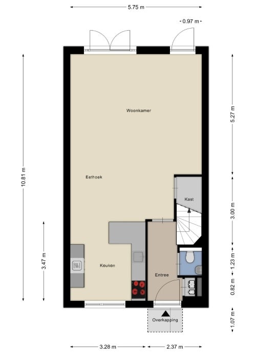 De woning ligt aan de Vissen 23 in een rustige woonwijk in Elst, centraal tussen Arnhem en Nijmegen.
