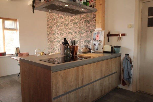 Begane grond: woonkamer met open keuken, bijkeuken, apart toilet en vaste trap naar de eerste verdieping
