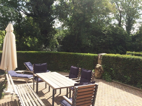 Een luxe ingerichte woning voorzien van alle gemakken en comfort. Via de entree komt u in de hal met separaat toilet en toegang tot zowel de woonkamer als een ruime slaapkamer met (verlengd) tweepersoons vier sterren boxspringbed, eigen douche en wastafel. De ruime en lichte woonkamer met open keuken, flatscreen en gashaard biedt u rechtsreeks toegang tot het zonnige en privacy biedende terras (voorzien van tuinset en 2 ligbedden) met op de achtergrond het rustgevende geluid van het kabbelende Terzieterbeekje. De moderne keuken is o.a. voorzien van een inductiekookplaat, koelkast met vriesvak, vaatwasser, combi oven, waterkoker en Senseo koffiezetapparaat.