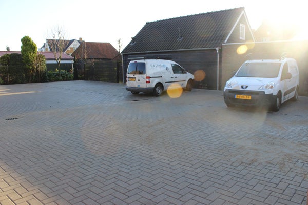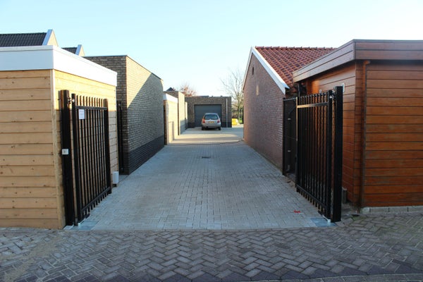 Via de patio/achtertuin is het afgesloten parkeerterrein aan de achterzijde van de woning te bereiken.