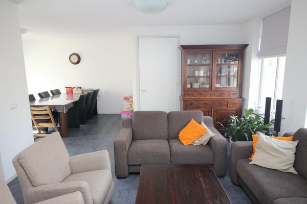 De leefruimte is op te delen in twee gedeeltes de zithoek van ca. 22m² en de open leef keuken van ca. 15m².