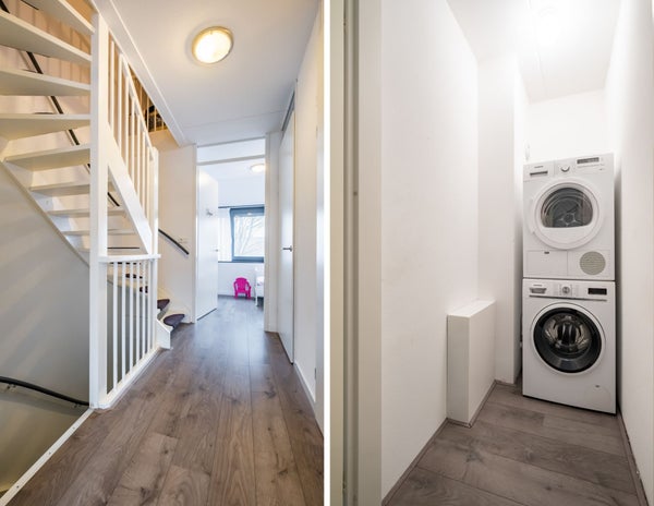 De handige wasruimte meet ca. 2 m2. In deze ruimte bevinden zich de aansluitingen voor het witgoedapparatuur en de unit voor de vloerverwarming op de eerste verdieping. Verder beschikt deze ruimte over mechanische ventilatie.
