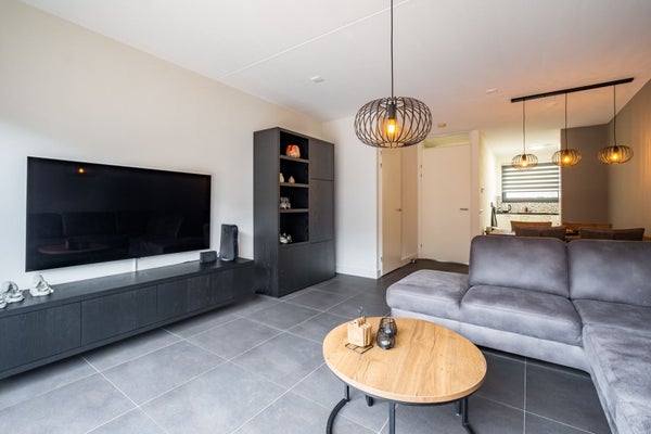 De uitgebouwde woonkamer geniet van veel natuurlijk licht door de grote raampartij aan de achterzijde. Deze ruimte is opgedeeld in een zithoek en eethoek. U kunt hier een riante hoekbank kwijt indien gewenst. Verder staat deze ruimte in open verbinding met de de keuken en is er een praktische trapkast aanwezig waar u uw spullen kunt bergen. Een deur geeft u de toegang tot de achtertuin.