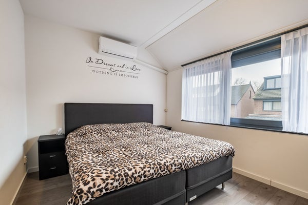 Slaapkamer II: de masterbedroom is gelegen aan de achterzijde van de woning en meet ca. 12 m2. Ook deze slaapkamer beschikt over elektrische rolluiken en heeft daarnaast nog een fijne airconditioning die deze ruimte heerlijk koel houdt tijdens de warme dagen.