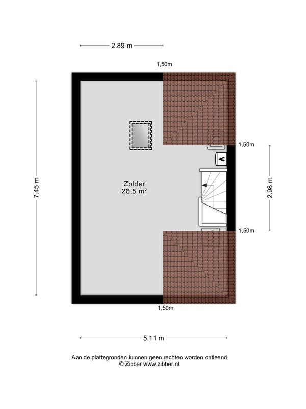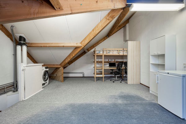 Bereikbaar middels vaste trap. Geheel begaanbare zolderruimte, ± 26,5 m², met vloerbedekking, dakvenster, opstelling combiketel (Nefit Ecomline HR 107 Excellent, ± 2012), volop berg-/kastruimte en aansluitingen t.b.v. wasapparatuur.