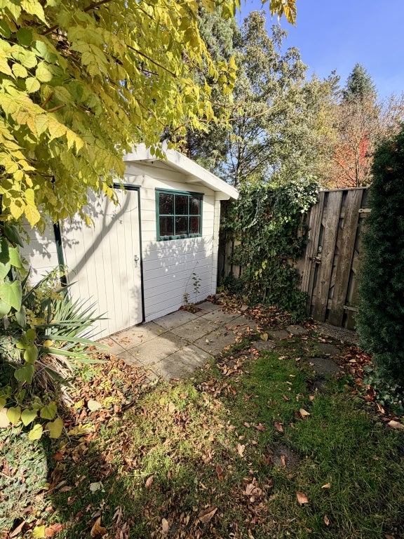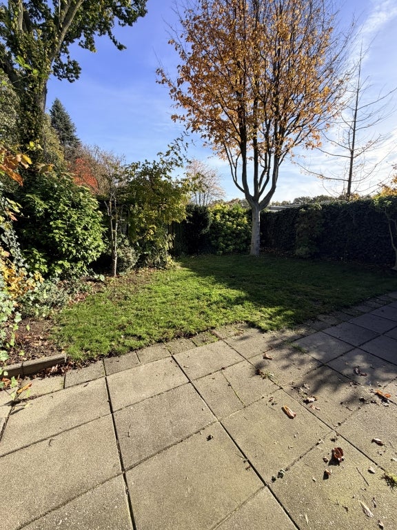 Groene, onderhoudsvriendelijke tuin met terras, grasveld, tuinhuisje en elektrische zonneluifel. Huisdieren in overleg.