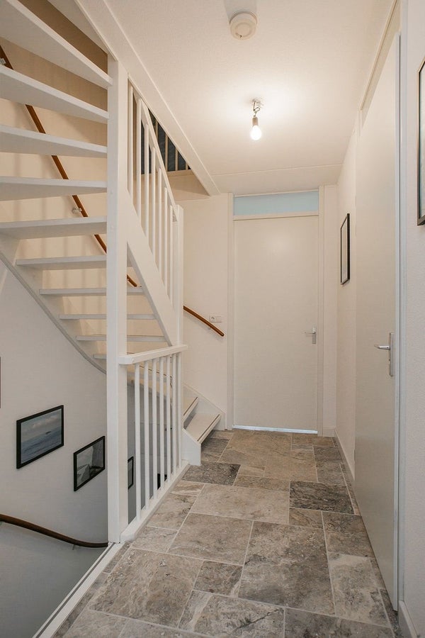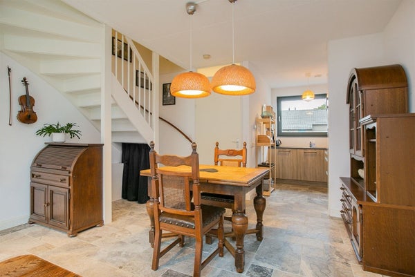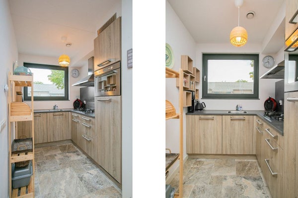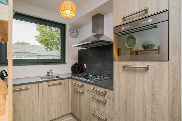 Vanuit de hal kunt u het toilet met fonteintje alsmede de woonkamer met moderne open keuken opstelling, bereiken. Laatst genoemde is voorzien van alle benodigde inbouw apparatuur, waaronder een vaatwasser, 4-pit gasfornuis, koelkast en magnetron-oven combinatie. De woonkamer is voorzien van grote raampartijen en biedt voldoende ruimte en lichtinval.