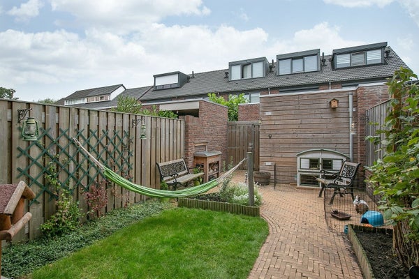 De tuin is richting het westen gelegen en biedt volop mogelijkheden, is voorzien van houten berging en een heerlijk terras om op te vertoeven.