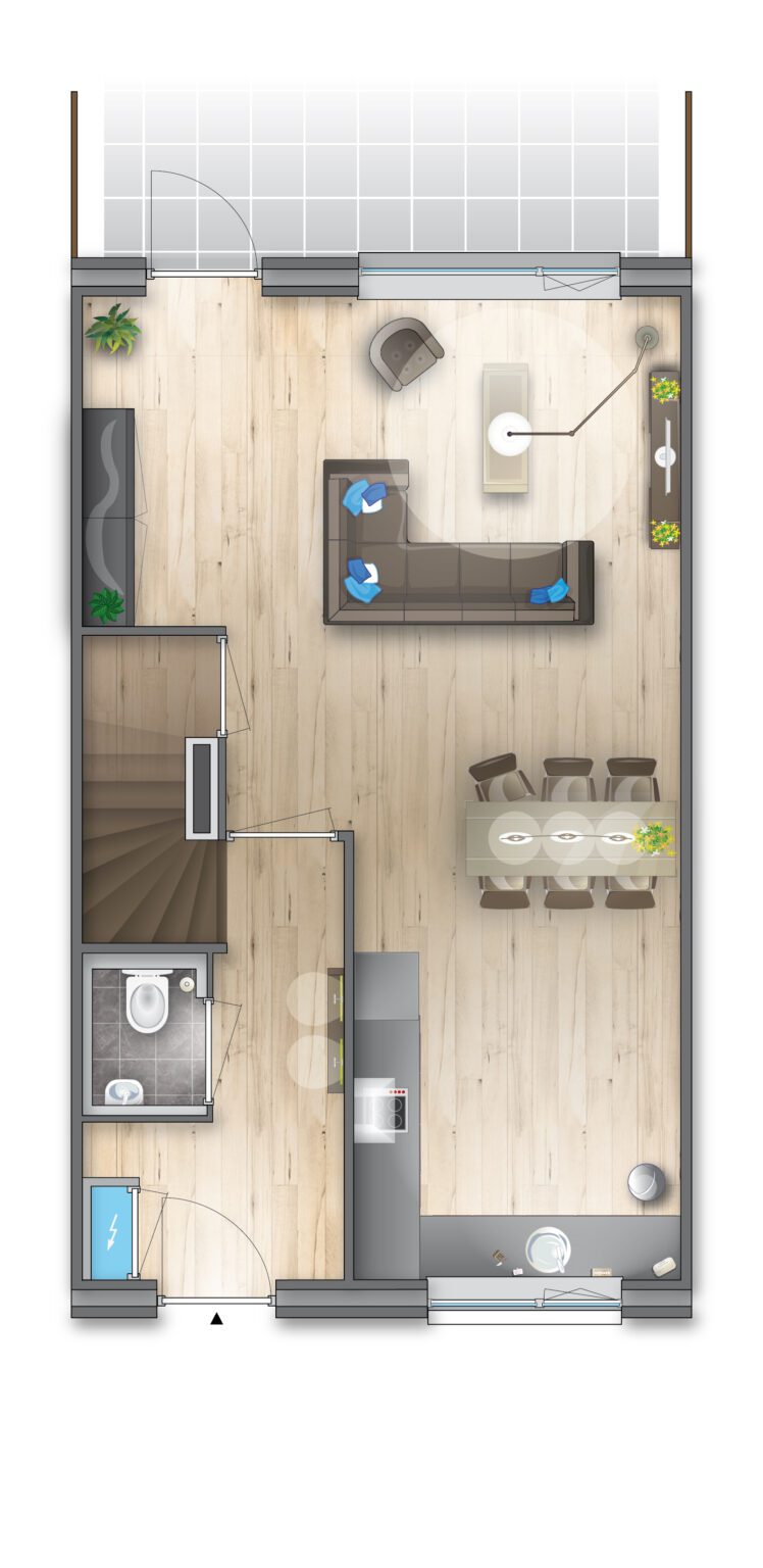 Deze energieneutrale woning is per 1 mei beschikbaar en biedt een full-option keuken, drie ruime slaapkamers en een bergzolder met vaste trap. De tuin ligt gunstig op de zon en heeft een vrijstaande houten schuur en achteringang. De woning is energie-efficiënt met zonnepanelen en een warmtepomp, wat betekent dat een energiebewust gezin geen energiekosten heeft. De indeling omvat een entree, toilet, woonkamer met open keuken, trapkast en toegang tot de achtertuin. Op de eerste verdieping zijn een overloop, drie slaapkamers en een badkamer met douche en dubbele wastafel. De woning heeft vloerverwarming op beide verdiepingen, pvc-vloeren en afgewerkte wanden. Goor, omringd door natuur, heeft een rijke cultuur en is goed bereikbaar. Huurprijs is € 1.310,00 p.m., met een waarborgsom van maximaal twee maanden en een minimale huurperiode van 24 maanden.