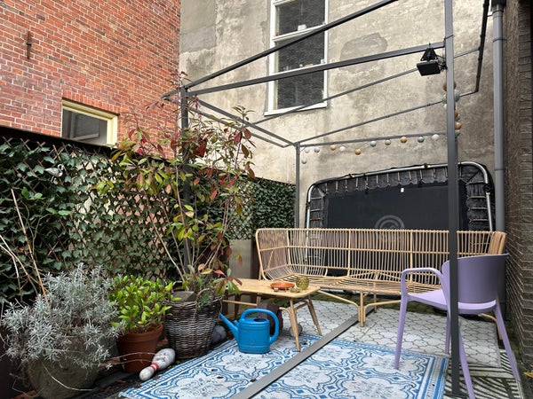 Zowel aan de voor- als achterzijde van de woning bevindt zich een buitenruimte.