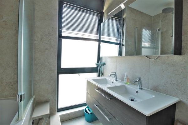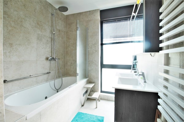 Eerste verdieping: overloop, tweede toilet, badkamer met een ligbad, douche, dubbele wastafel en een handdoekradiator, twee slaapkamers, wasruimte met de CV-ketel en witgoedaansluitingen en een balkon aan de voorzijde van de woning.
