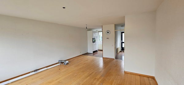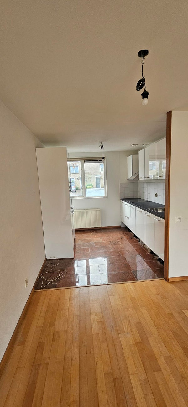 Entree, hal voorzien van natuurstenen vloer, meterkast, trapopgang en toilet, ruime woonkamer ter grootte van circa 38m² voorzien van parketvloer, open keuken met voldoende kastruimte en voorzien van natuurstenen vloer.