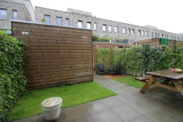 Gestoffeerde eengezinswoning met een eigen garageplek in de ondergrondse garage te huur.