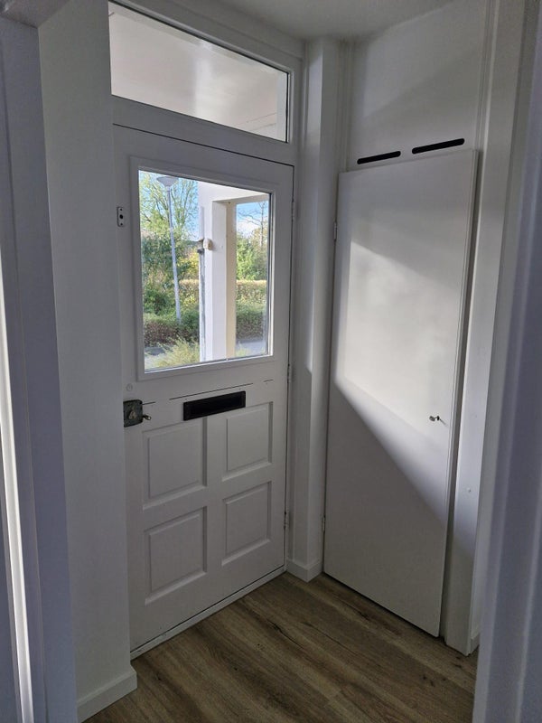 Binnenkomst in de hal, die toegang biedt tot de toiletruimte en de trap naar de verdieping, waaronder extra bergruimte is gecreëerd. De gehele begane grond is voorzien van vloerverwarming. Vanuit de hal loop je door naar de nieuw geplaatste keuken (2025), met een recht keukenblok met wasbak, vaatwasser, koelkast en combi-oven, voorzien van veel opbergruimte en een inductiekookplaat. De keuken loopt naadloos over in de sfeervolle woonkamer, waar dankzij de grote raampartij veel natuurlijk licht naar binnen valt. Door de open indeling blijf je altijd in contact met de rest van het huis, wat zorgt voor een fijne en verbonden sfeer. De woonkamer geeft toegang tot de ruime, zonnige tuin.