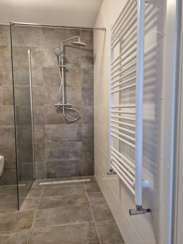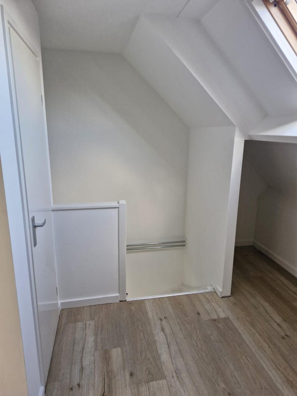 De overloop biedt toegang tot drie slaapkamers van 12.6, 12,2 en 5,9 m². De compleet vernieuwde badkamer (2025) is ingericht met een inloopdouche, wastafelmeubel met spiegel en een tweede toilet.