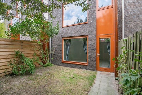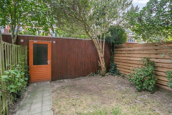 - Achtertuin, 5x5m, op het zuiden met ruime fietsenberging en achterom;