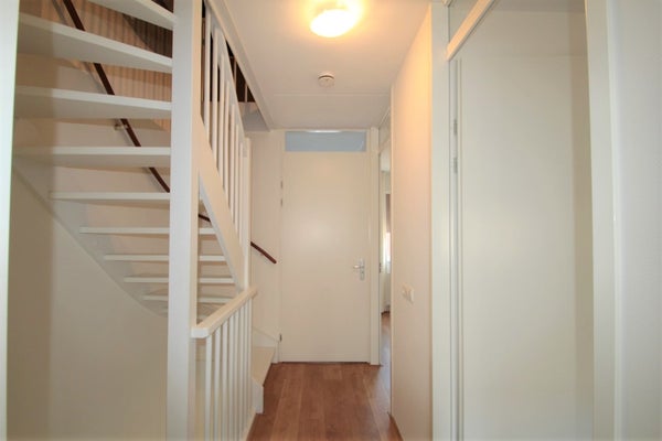 Begane grond: hal/entree met toilet en meterkast, ruime tuingerichte woonkamer met open keuken (totaal ca. 36 m2), openslaande deuren naar de tuin en een separate loopdeur. Open trap naar de verdieping. Nette keukeninrichting (wit, hoekopstelling, aan de voorzijde) v.v. koelvriescombi, vaatwasser, oven-magenetroncombi, gaskookplaat en afzuigkap.