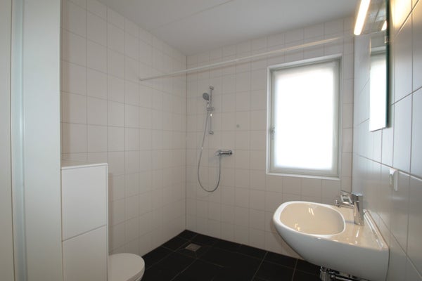Eerste verdieping: overloop, drie slaapkamers van ca. 12, 10 en 6 m2, nette badkamer (ca. 4,5 m2) met douche, tweede toilet en vaste wastafel.