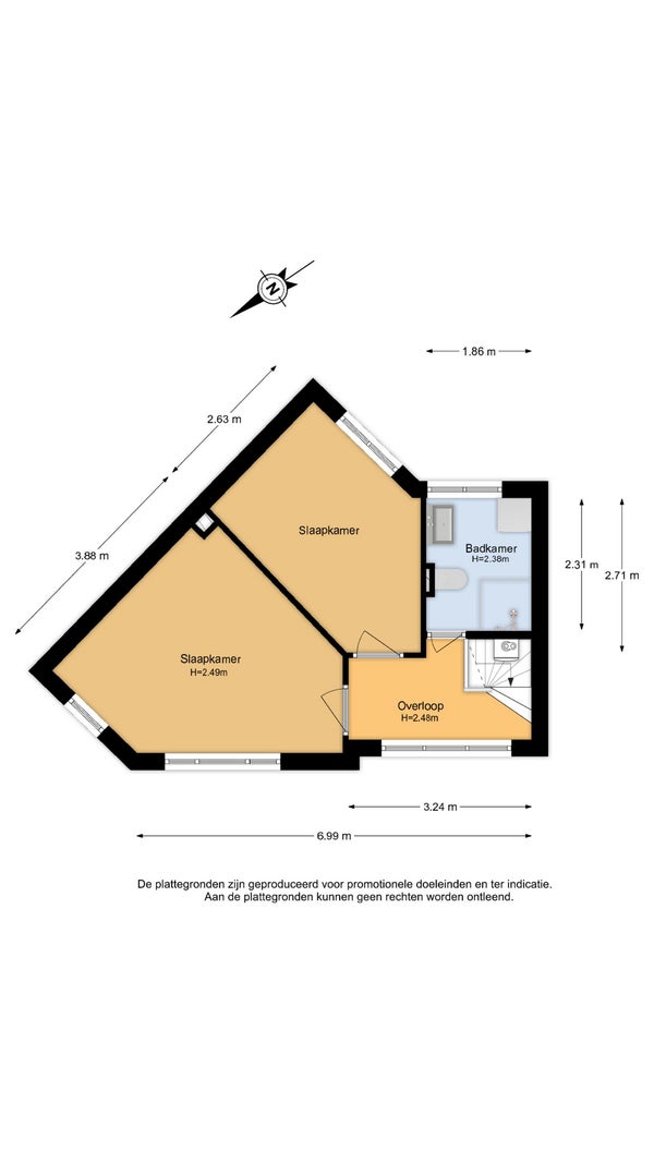 Deze informatie is met de nodige zorgvuldigheid samengesteld. Er wordt echter geen aansprakelijkheid aanvaard voor eventuele onvolledigheden, onjuistheden of de gevolgen daarvan. Alle opgegeven maten en oppervlakten zijn indicatief. Koper/huurder heeft een eigen onderzoeksplicht naar alle zaken die voor hem of haar van belang zijn. Met betrekking tot deze woning treedt de makelaar op als adviseur van de verkoper.