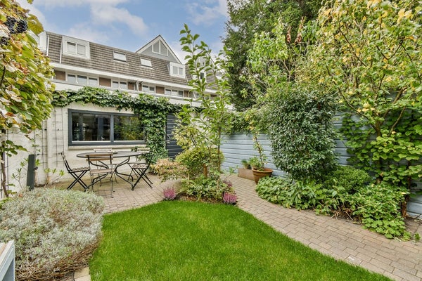 De stadstuin is gezellig en onderhoudsvriendelijk, met voldoende ruimte om te zitten en te genieten van de zon. Achterin bevindt zich een praktische schuur voor extra opslag.