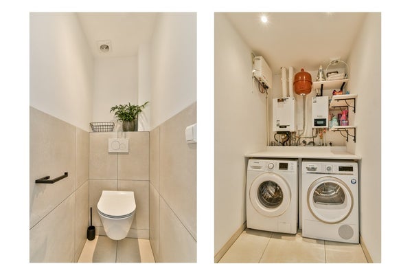 De bovenste verdieping verrast met nog eens twee royale slaapkamers en een tweede luxe badkamer voorzien van ligbad, inloopdouche en wastafelmeubel. Het toilet is hier apart gesitueerd. Daarnaast is er een aparte ruimte voor wasmachine en droger, netjes weggewerkt en praktisch ingedeeld.