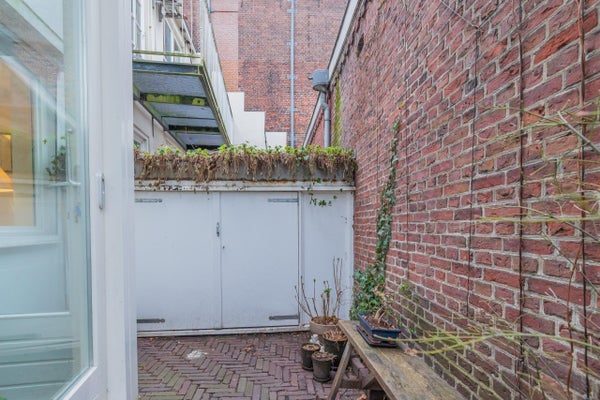 De zonnige achtertuin beschikt over een berging en via een klassiek hek heeft u directe privétoegang tot de Hortus Medicus, een unieke groene oase midden in de stad.