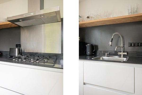 Op de eerste etage is er een ruime en lichte woonkamer aanwezig met zicht over de weilanden. Geen overburen! De keuken is uitgevoerd met vaatwasser, koelkast, 5-pits gasfornuis en afzuigkap. De vriezer is aanwezig op de begane grond.